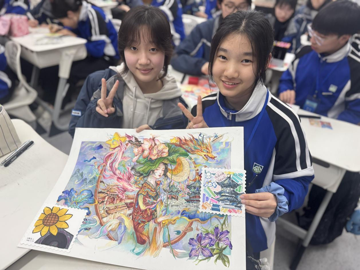 Furthermore, Feng Hing Yat, a Secondary 3 student, noted, "I was deeply attracted by the strong artistic atmosphere at Nanjing Ninghai Middle School. Masterpieces of calligraphy and painting were everywhere on campus." Under the guidance of art teachers, students from both schools worked on a theme titled "The Pen as a Letter, Ink as Emotion", sketching Hong Kong's vibrant life on stamps and condensing their shared aspirations on a single canvas.