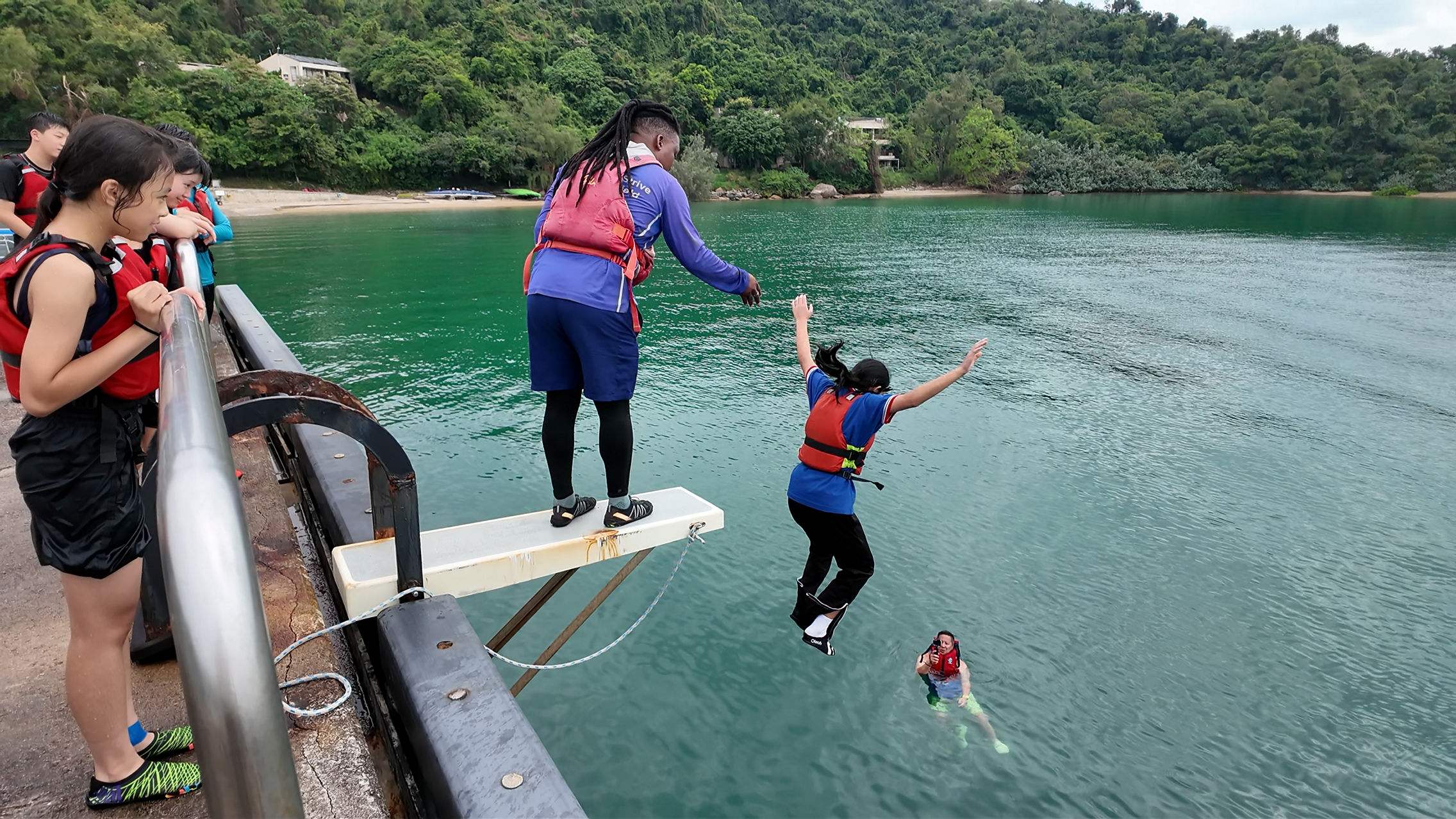 One of the most thrilling parts of the camp was an exhilarating session of water activity. Gathered on a sturdy pier and clad in life jackets, the students prepared for a supervised jump into the sea. This activity served as a powerful metaphor for overcoming personal barriers. By successfully completing the jump, students experienced an immediate boost in self-confidence and learned to manage fear in a controlled environment. The triumphant smiles seen immediately after the splash confirmed the positive impact of facing and conquering a physical challenge.