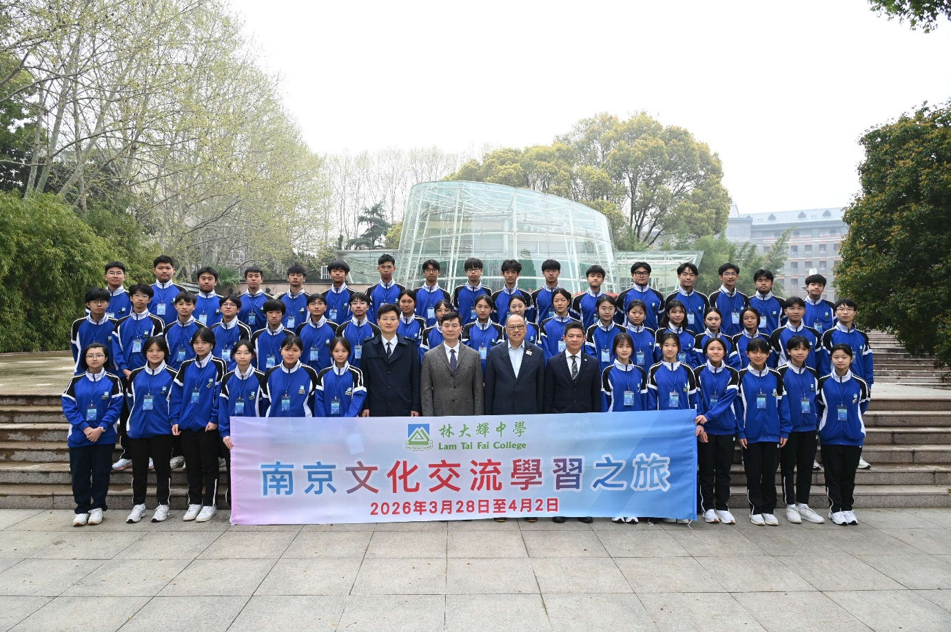 林大輝中學於3月28日至4月2日舉辦了為期六天五夜的「南京文化交流學習之旅」,由校監林大輝博士和郭劍輝校長親自帶領,約60名師生共同前往南京,展開這次學習之旅。此行透過實地參觀、校際交流及民生體驗,讓學生深入了解國家的發展歷程與文化底蘊,進一步培養對國民身份的認同與自豪。