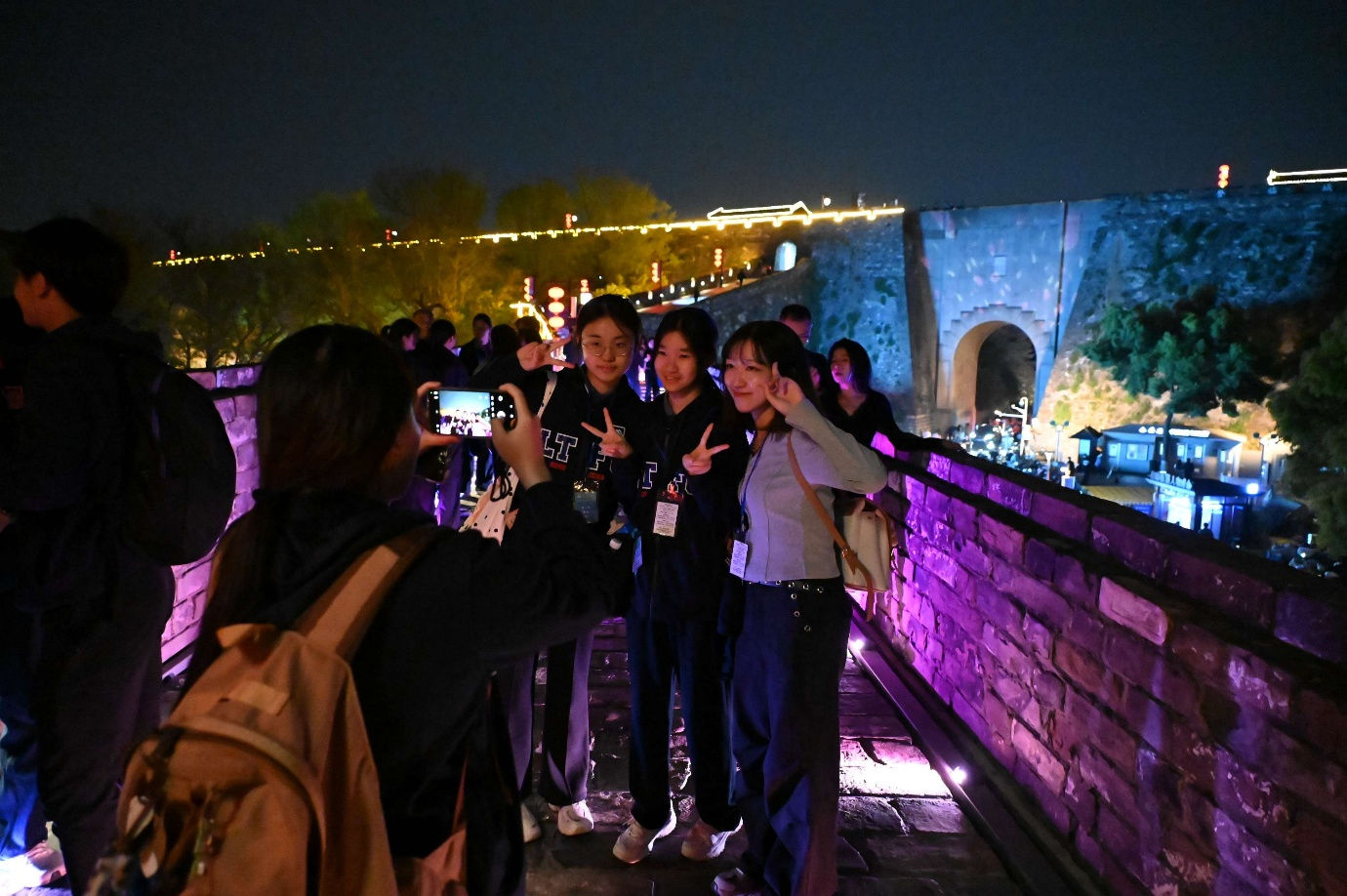 A night cruise on the Qinhuai River was a major highlight. At night, the riverside scenery looked like a painted scroll, with ancient buildings mirrored on the water. Riding a traditional painted boat, shimmering ripples made us feel as if we had entered a poem. No wonder Zheng Xie once praised, "Along ten miles of Qinhuai waters unfolds a tableau of Six Dynasties splendour." Students seized every chance to take photos and preserve these beautiful memories. Finally, we strolled across the Nanjing Eye Pedestrian Bridge, taking in the city's stunning night views, and ending the journey with unforgettable memories.