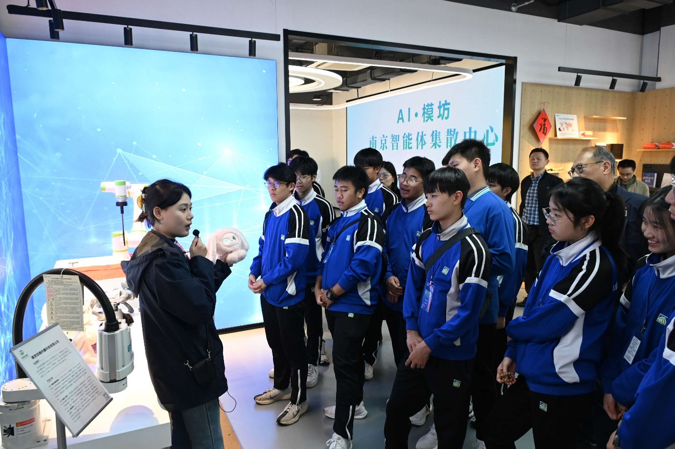 在現今人工智能技術加速發展的時代背景下,學校特別安排了參觀雨花台區「人工智能生態街區」及「天創機器人」——南京天創電子技術有限公司。同學們深深感受到科技與產業的融合力量,並備受啟發。這次參觀讓學生們了解到AI在城市應用、智慧交通與產業協同中的廣泛可能性,進一步激發他們學習新技術的熱情和好奇心。